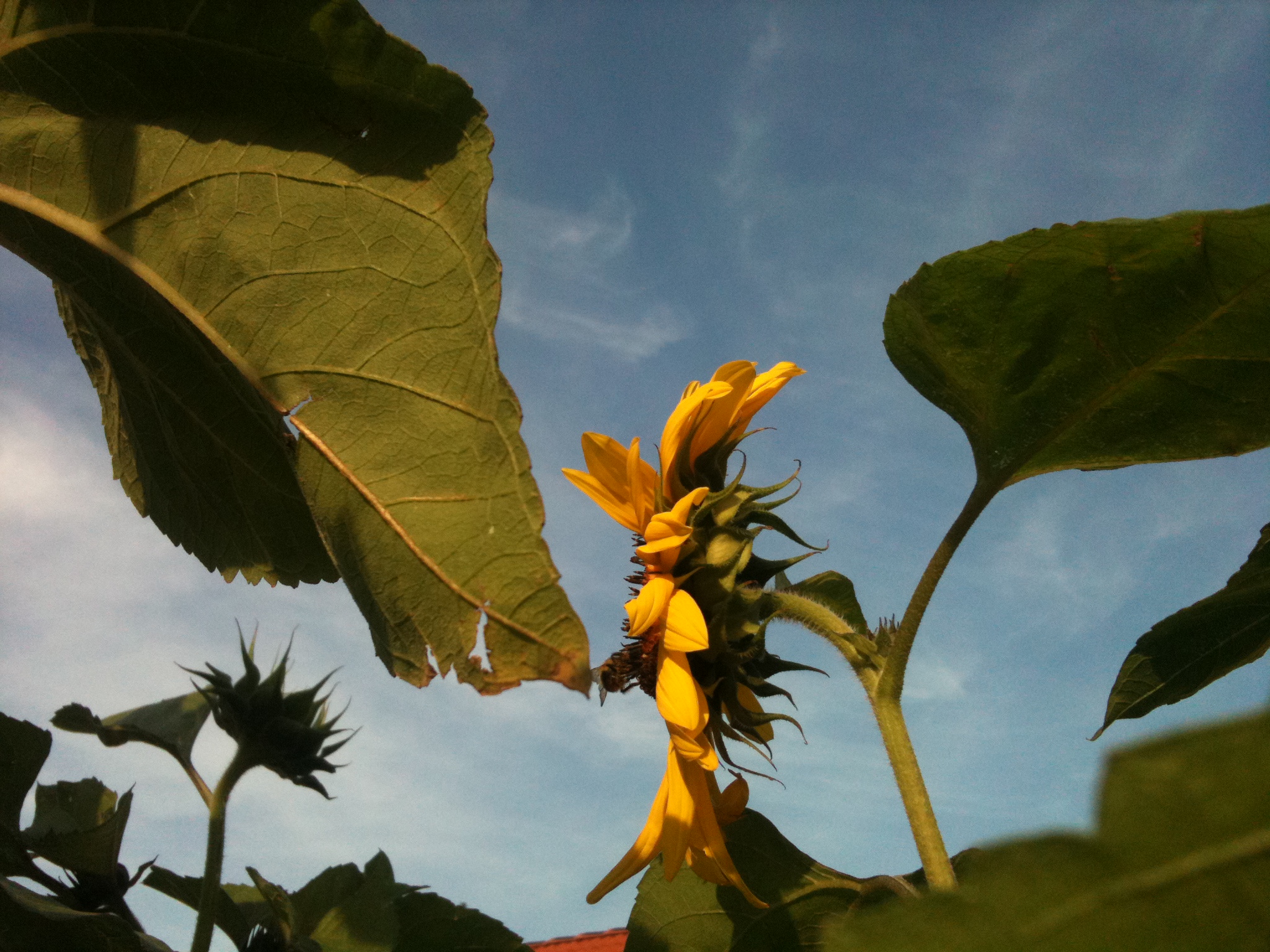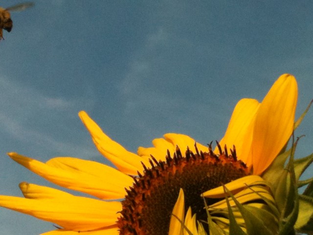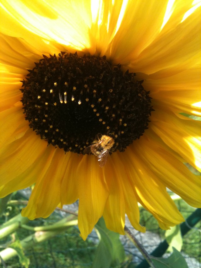 All work and no play lately, hence the silence. But here are a few more sunflower pics — this time out in “the wild” (aka along the garden fence). Cellphone pics only, I’m afraid, but for that they’re not bad.