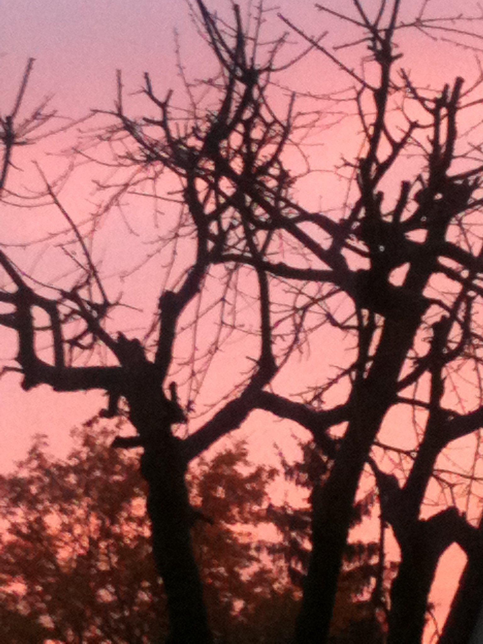 Just thought I’d share this impression from my evening walk with Isla. I really liked the paper cut-out quality of it, in addition to the colour. Unfortunately, it’s only an fuzzy cellphone snapshot — I really should listen to the Husband and always take the camera along… Hope you like it anyway.