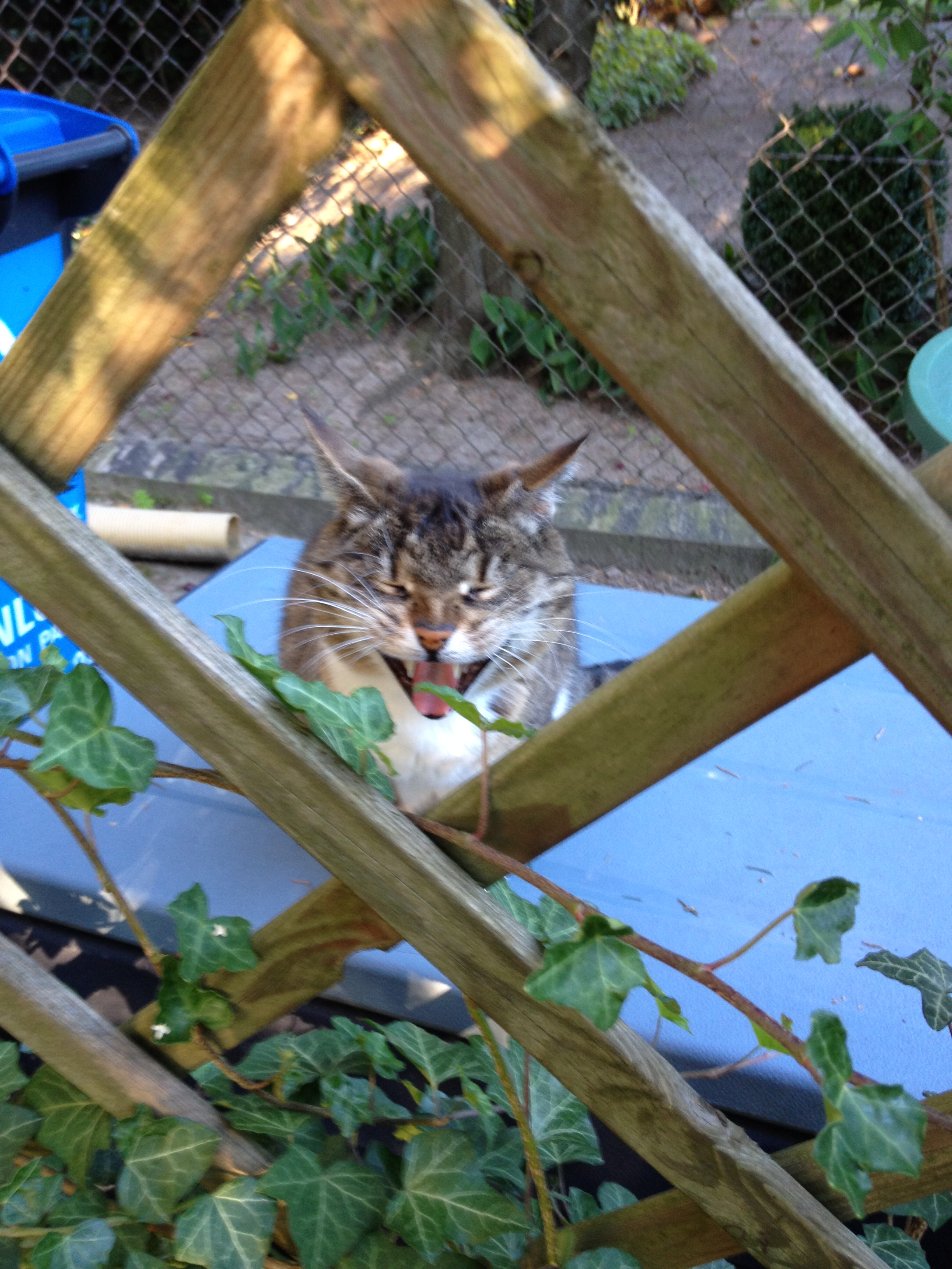 Unfortunately, the camera in my phone decided to focus on the trellis — but the photo still makes me smile.