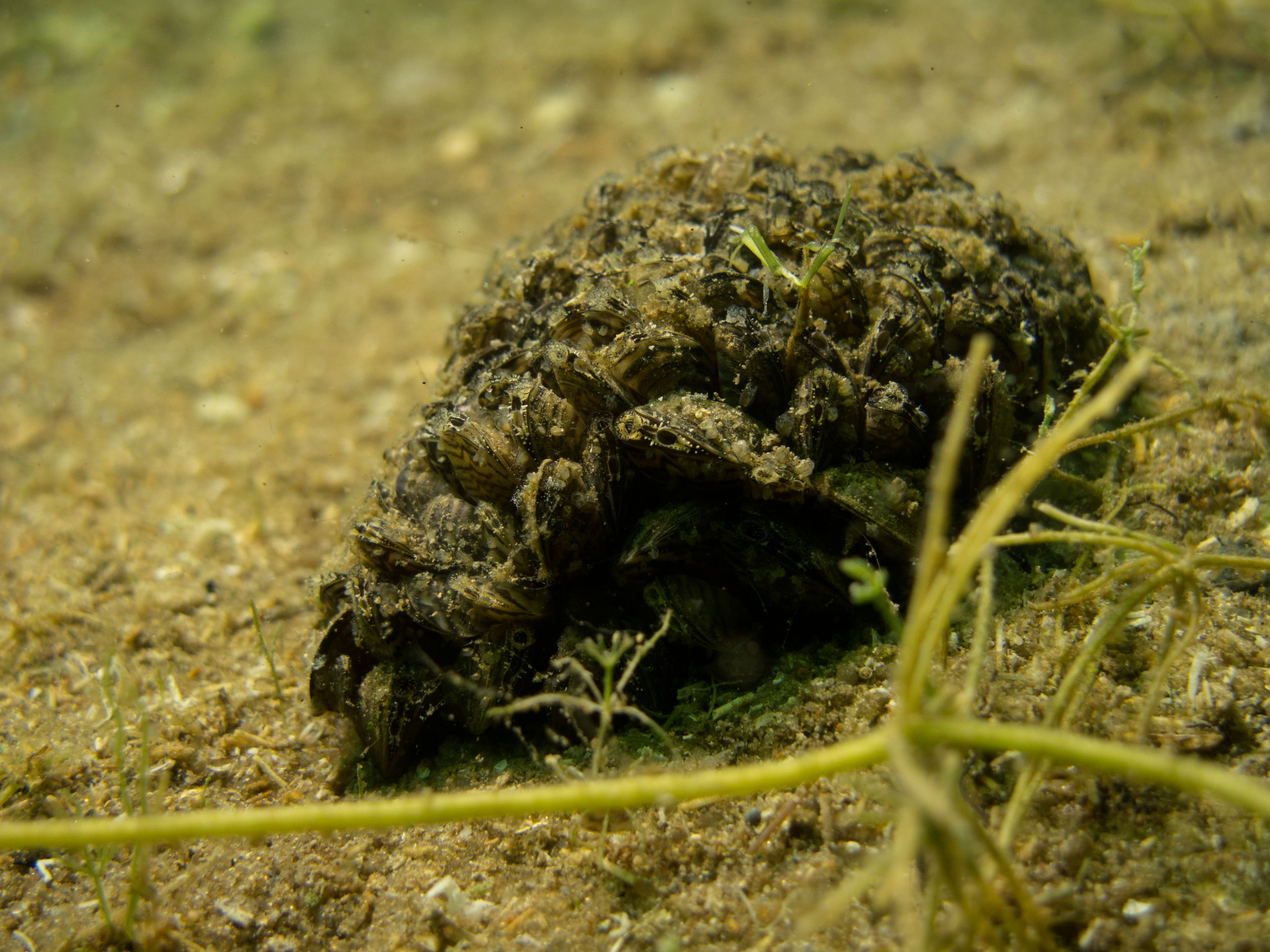 Here you can see that the mussels attach to an object on the ground and then merge into a colony: