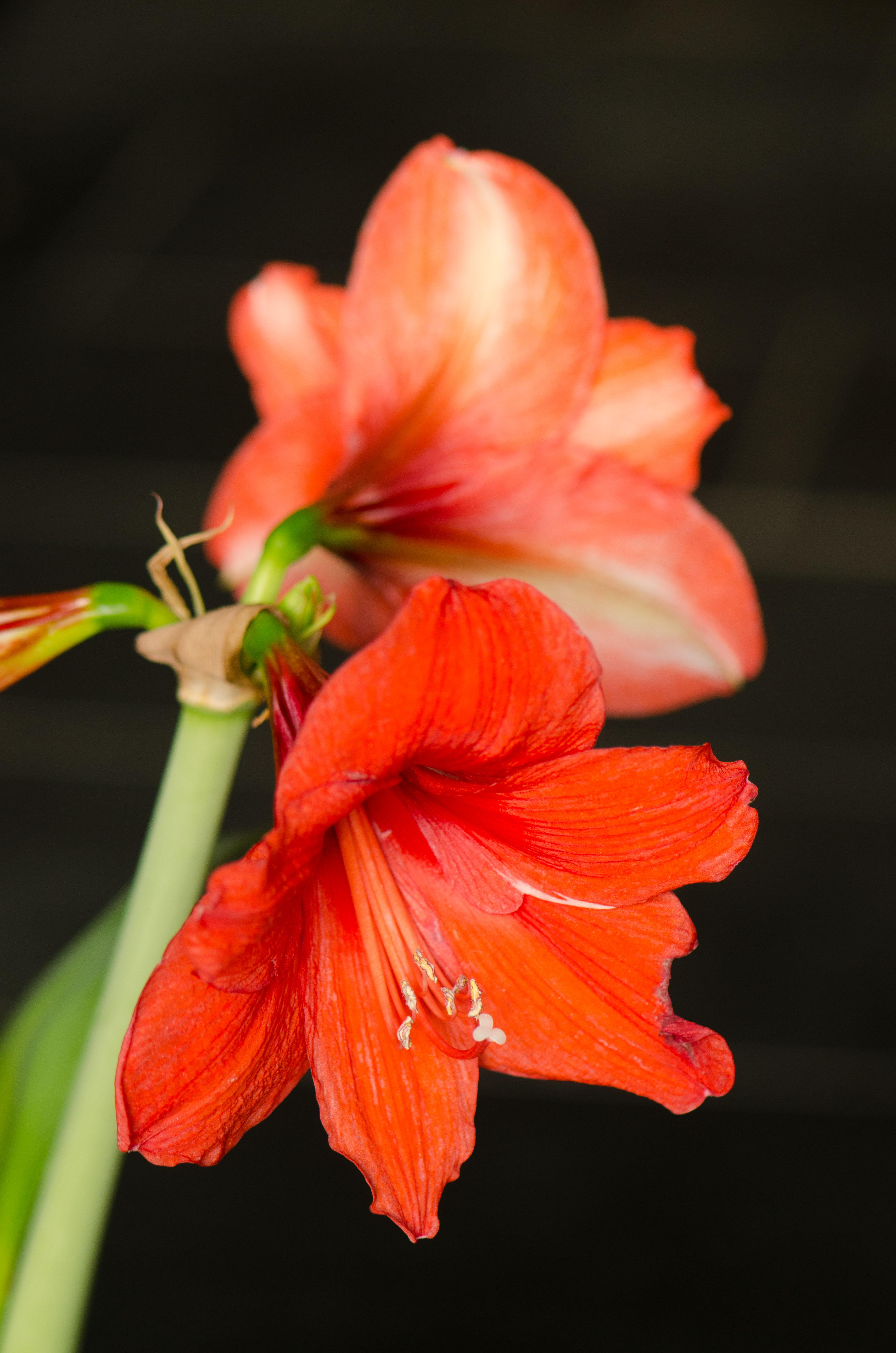 There are, of course, guides on how to get your amaryllis to bloom in December (scroll halfway down here, for example). Alternatively, you can put your amaryllises on a neglected windowsill in the spring and pretty much forget about them. Then they’ll bloom when they feel like it. Like in August.